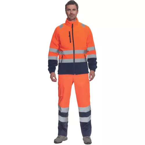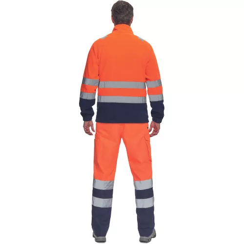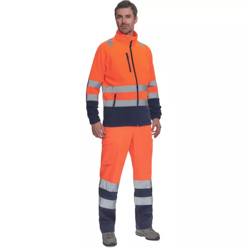 • Hi-Vis férfi polár pulóver 5 cm széles fényvisszavető csíkokkal • cipzáras kivitelben • 1 mellkasi és 2 cipzáras oldalzseb • rugalmas mandzsetták, a pulóver alja húzózsinórral szűkíthető