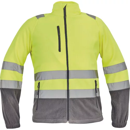 • Hi-Vis férfi polár pulóver 5 cm széles fényvisszavető csíkokkal • cipzáras kivitelben • 1 mellkasi és 2 cipzáras oldalzseb • rugalmas mandzsetták, a pulóver alja húzózsinórral szűkíthető