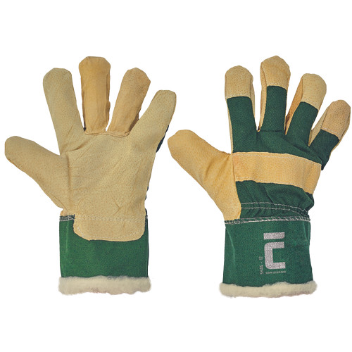 • melegen bélelt kesztyű • hasított sertésbőr tenyér, pamutszövet kézfej és mandzsetta