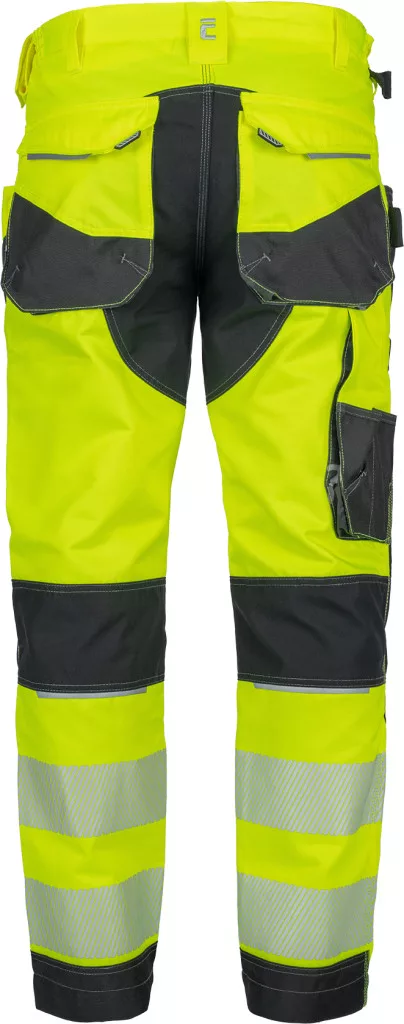 • férfi jólláthatósági nadrág rugalmas derékkal és többfunkciós zsebekkel, 7 cm-es nyomtatott fényvisszavető csíkokkal • megerősített térdrész és térdzseb Oxford 600D anyagból térdvédő behelyezéséhez • ellenálló hármas fedőző varrás az üleprészen és a meghosszabbítható szárakon