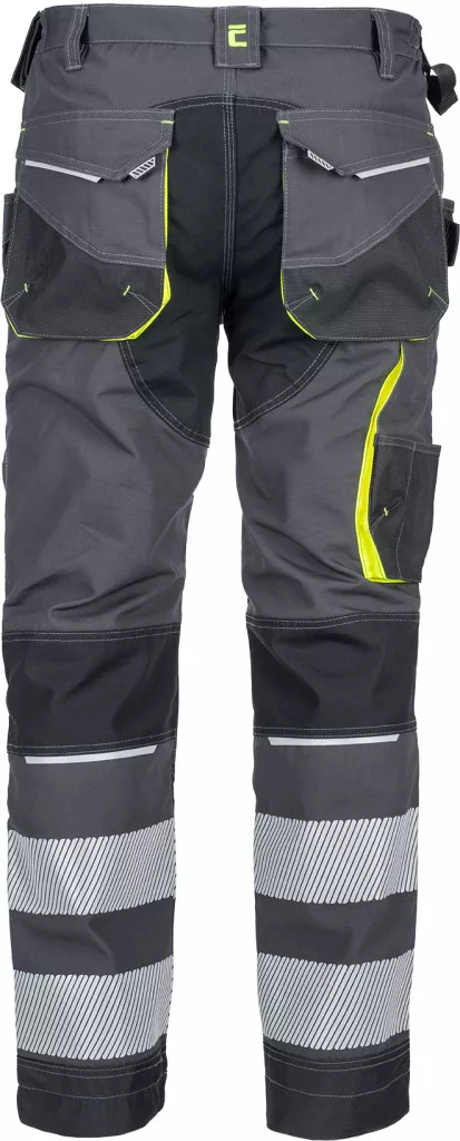 • férfi nadrág rugalmas derékkal és többfunkciós zsebekkel, 7 cm-es szegmentált fényvisszavető csíkokkal • megerősített térdrész és térdzseb Oxford 600D anyagból térdvédő behelyezéséhez • ellenálló hármas fedőző varrás az üleprészen és a meghosszabítható szárakon