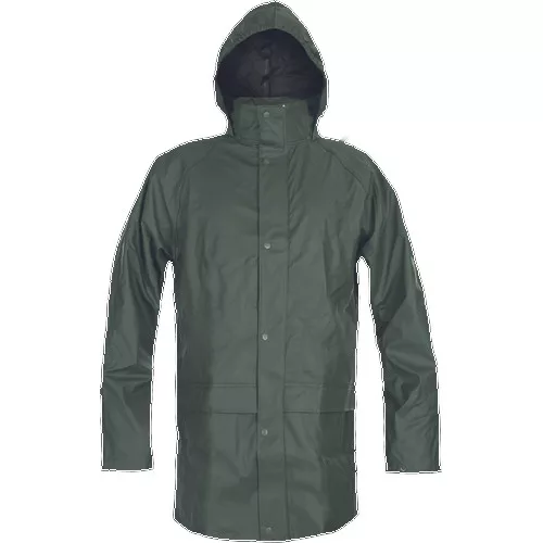 • víz- és szélálló esőöltöny • esőkabát gallérba hajtott kapucnival és rugalmas derekú nadrággal • puha poliészter szövet • 2 mély zsebfedős oldalzseb • patenttal szűkíthető mandzsetták