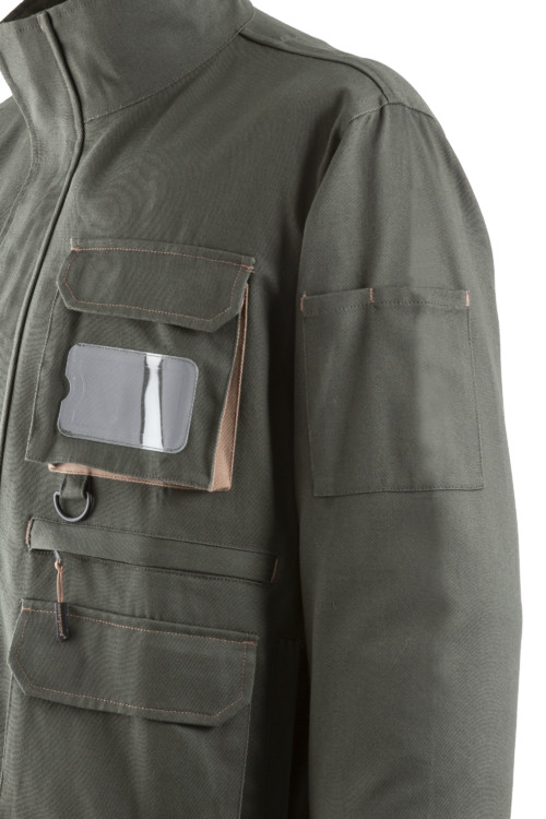 * Twill (sávoly szövés): 100% pamut - 300 g/m2 * 9 zseb * állig érő húzózár, szennyeződésektől védő, tépőzáras cipzárfedővel * névtábla tartó, D-gyűrű* tépőzáras mandzsetta * kontrasztos színek* Regular fit