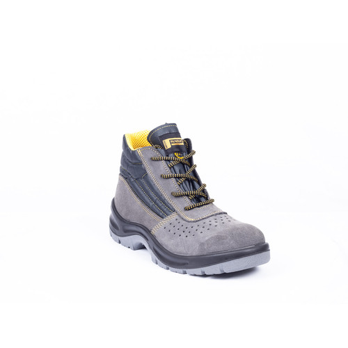 • ESD biztonsági bakancs • marha velúrbőr felsőréz • dupla sűrűségű poliuretán külső talppal, kompozit lábujjvédővel és átszúrás ellen védő köztalppal • fémmentes kivitel