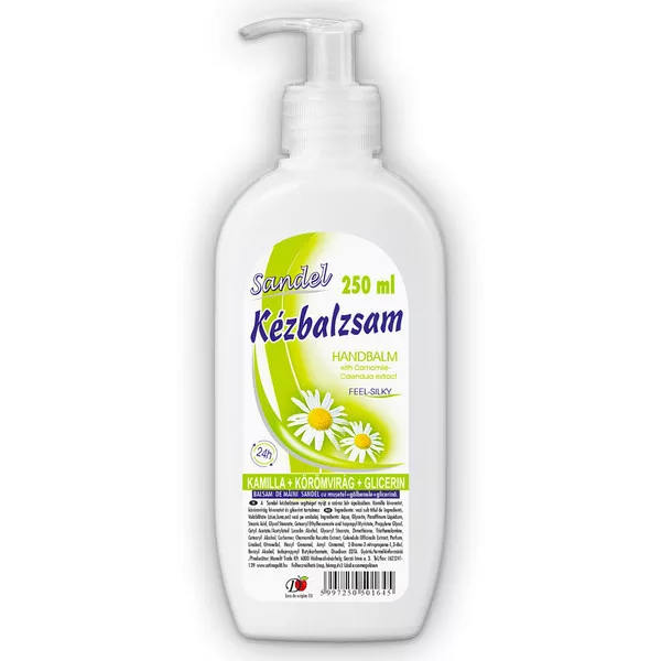 A Sandel kézbalzsam segítséget nyújt a száraz bőr ápolásában. Kamilla kivonatot, körömvirág kivonatot és glicerint tartalmaz. Kiszerelés: 250 ml/pumpás flakonban.