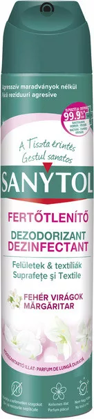 A Sanytol, a klórmentes fertőtlenítés szakértője kifejlesztette fertőtlenítő légfrissítő aeroszolját, mely biztosítja Önnek a tökéletes higiéniát és kellemes illatot varázsol környezetébe. Egyedülálló formulája semlegesíti a rossz szagok forrását, és elpusztítja a felületeken és textíliákon található baktériumok, gombák és vírusok 99,9%-át.