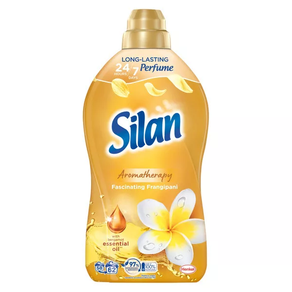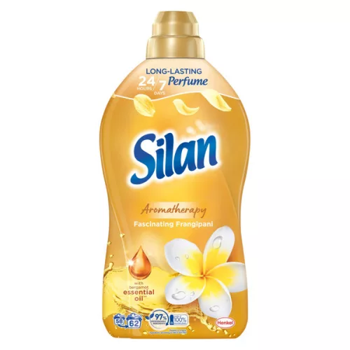 Silan Aromatherapy:A Silan ''egy kis extra nekem és a ruháimnak''. Hagyja, hogy elröpítsük az illatok csodálatos világába a Silan öblítővel. Élvezze a különösen hosszantartó frissességet, amely a nap 24 órájában tart!Küldje el érzékeit egy utazásra a Silan Aromatherapy segítségével, és gyönyörködtesse testét és lelkét inspiráló illóolajokkal.Lazítsa el érzékeit a magnólia varázslatos illatával, vigye be a trópusi sziget hosszan tartó és friss illatát mindennapjaiba vagy kölcsönözzön egzotikus gyümölcsös illatélményt ruhatárának a Silan Aromatherapy öblítőkkel akár a nap 24 órájában, a hét minden napján.Egyedülálló és fenntartható parfümtechnológiának köszönhetően, valamint értékes illatokkal egész nap inspiráló illatot kölcsönözhet ruháinak. Az általunk használt illatanyag összetevők eltérő párolgási jellemzőkkel rendelkeznek, biztosítva az illatanyagok késleltetett felszabadulását - a ruhanemű hosszan tartó illata érdekében.Jellemzők:Minden textíliáraÖsszetevők:<5% kationos felületaktív anyagok, Illatanyagok (Benzyl Salicylate, Hexyl Cinnamal, Limonene, Coumarin, Tetramethyl Acetyloctahydronaphthalenes, Amyl salicylate, Linalyl Acetate, Citrus Aurantium Peel Oil)Tárolás:Minőségét megőrzi a gyártási dátumtól (ld. a csomagoláson) számított 2 évig.Tárolási típus:SzobahőmérsékletűBiztonsági figyelmeztetés:Gyermekektől elzárva tartandó. Ne öntse közvetlenül a ruhára.Kiszerelés: 1,364 liter/62 mosásCsomagolás: 1 db, gyűjtőcsomagolás: 8 db.