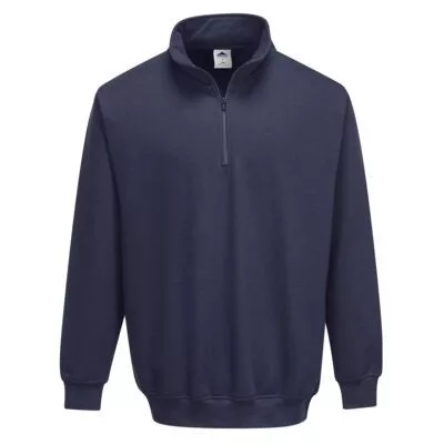 Klasszikus kialakítású pulóver. Magas gallér, 1/4 zippzár, kényelmes viselet.