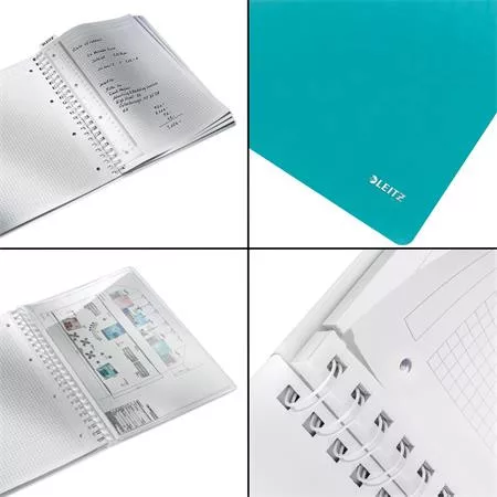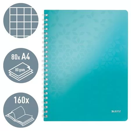 Spirálfüzet, A4, kockás, 80 lap, LEITZ "Wow", jégkék