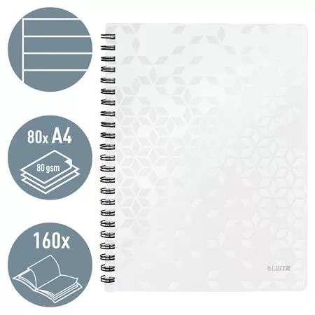 Spirálfüzet, A4, vonalas, 80 lap, LEITZ "Wow", fehér