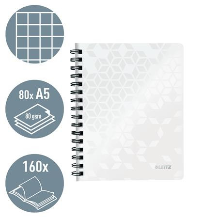Spirálfüzet, A5, kockás, 80 lap, LEITZ "Wow", fehér