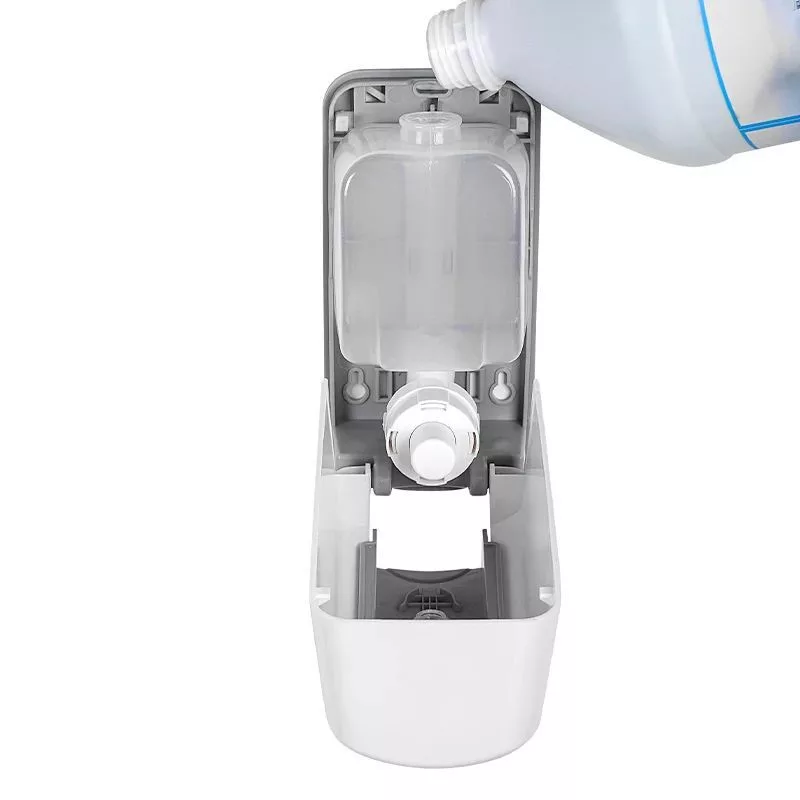 Manuális spray szappan és fertőtlenítőszer adagoló. Egyszerű és gazdaságos működtetés. Az adagolt folyadék egyenletesen terül szét a tenyérben.