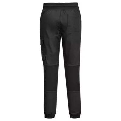 Modern nadrág, amely hihetetlen kényelmet és rugalmasságot biztosít. A finoman összeillesztett, megerősített térdpanelek biztosítják a mozgás szabadságát, míg a bordázott derékpánt és a rugalmas szegélyek univerzális illeszkedést biztosítanak. További jellemzői közé tartozik az ágyékzseb és a több zseb, amelyek ideálisak telefonok, tollak, szerszámok biztonságos tárolására, valamint a konyharuhák tárolására szolgáló sín.