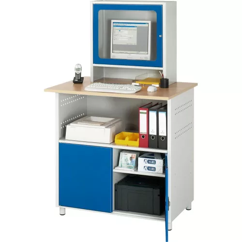 Számítógépszekrény, 25 mm vastag bükk dekorpanel, irodai használatra, 1 rekesz balra, 2 rekesz jobbra, monitorházzal. mélység 300 mm, szél. x mély. x ma. 1100x800x1100 mm, ral 7035/5010