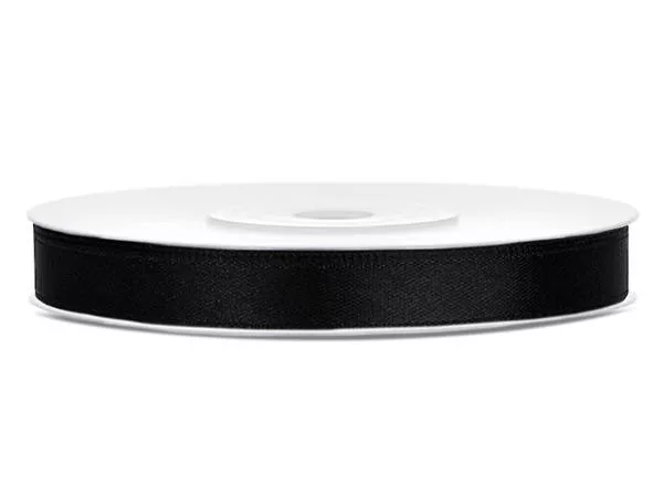 Szatén szalag, 6 mm, fekete