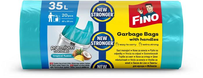 Szemeteszsák, köthető füles, illatosított, 35 l, 20 db, 49x59 cm, 12 µ, FINO "Premium handles", világoskék