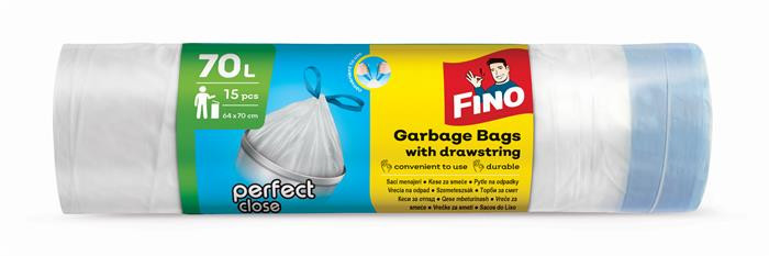 Szemeteszsák, önzáró szalagos, 70 l, 15 db, 64x70 cm, 14 µ, FINO "Perfect Close", fehér