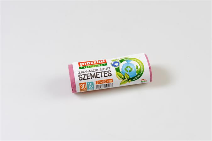 Szemeteszsák, újrahasznosított, 30 l, 15 db, 50x60 cm, 12 µ, MAZZINI, pink