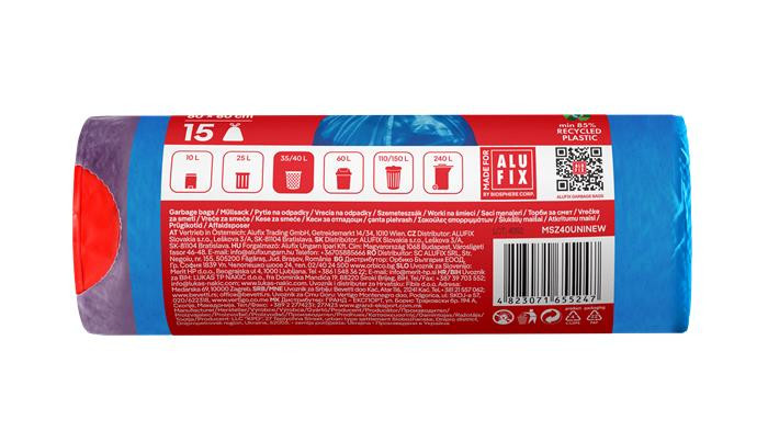 Minden Alufix szemeteszsák újrahasznosított műanyag felhasználásával készül. Amikor Alufix szemeteszsák mellett dönt, a Föld erőforrásainak körforgását támogatja.