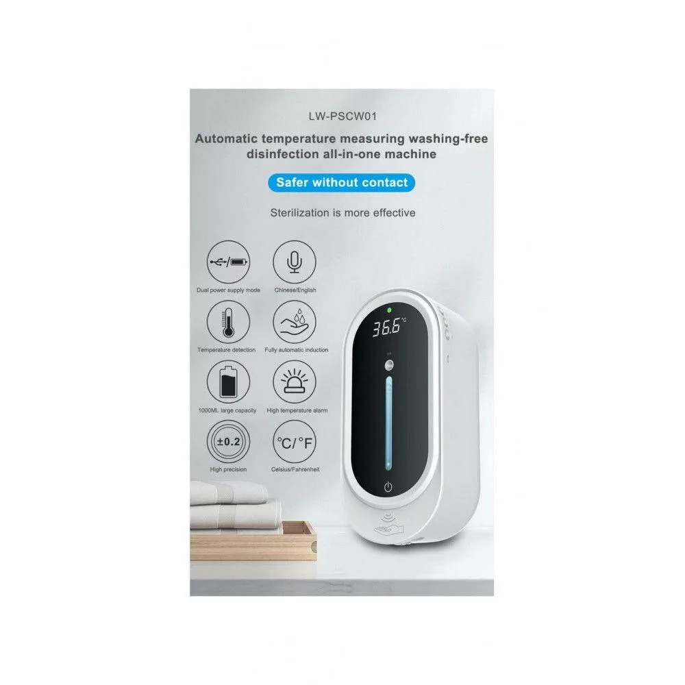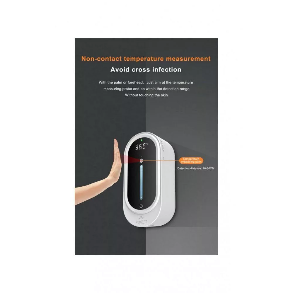 Szenzoros folyékony szappan és gél adagoló lázmérővel fali 1000ml