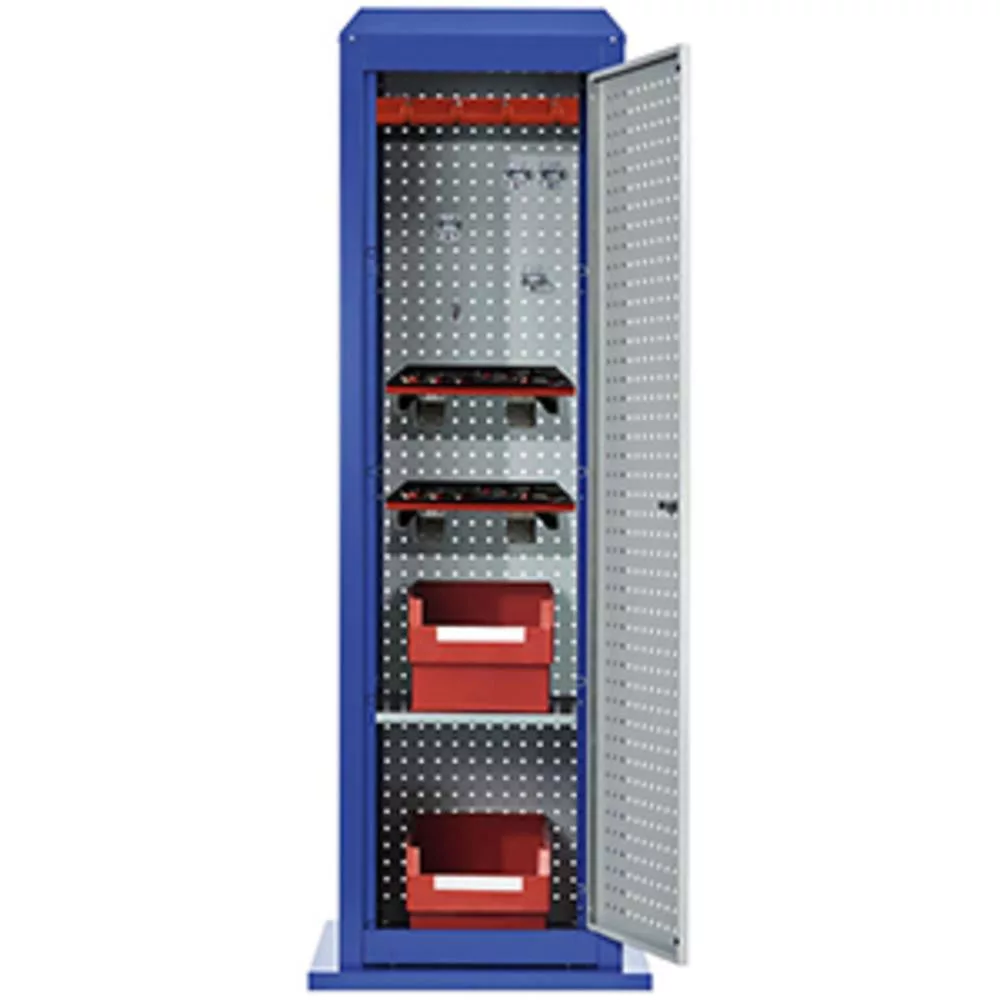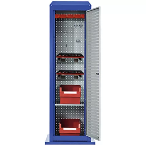 Szerszámtorony, széxméxma 700x700x2015 mm, álló, 5 perforált panel, 1 polc, 1 ajtó, ral 5010/7035