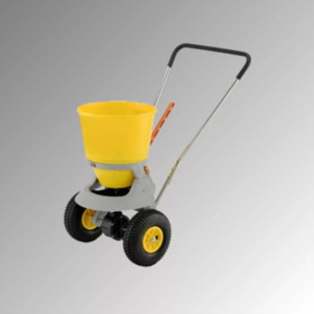 Szóró kocsik, 6 szórási szinttel, szórási szélesség 1-4 m, műanyag keret sárga műanyag homokgyűjtő tartállyal, űrtartalom 20 l