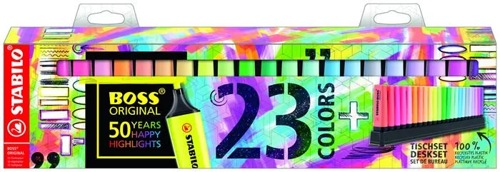 Szövegkiemelő készlet, 2-5 mm, STABILO "Boss 50th Birthday" 23 db-os asztali készlet