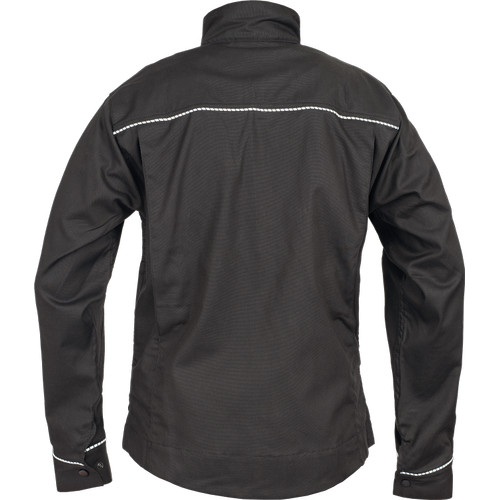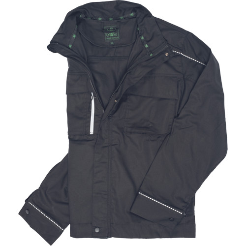 • modern szabású munkakabát formázott ujjvarrással • bővített hátrész, megerősítés a könyökrészen, cipzárralzáródó kialakítás patentos hajtókával • 2 zsebfedős mellzseb, cipzáras Napóleon zseb jobb oldalon • 2 belső zseb • patenttal szűkíthető mandzsetták • fényvisszavető részletek