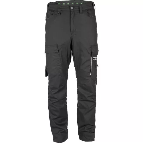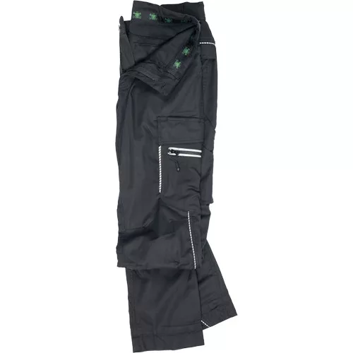 • modern szabású munkanadrág formázott oldalvarrásokkal • rugalmas derékpánt, megerősített térdrész, rugalmas betétek hátul és az üleprészen, 2 D-gyűrű (nikkelmentes) a derékpánton • 2 első zsebbel, 2 zsebfedős oldalzsebbel, a bal száron cipzáras zsebbel (reflex cipzár), többfunkciós zsebek szerszámoknak, 2 farzseb, jobb oldalon zsebfedős, tépőzáras záródással • fényvisszavető részletekkel