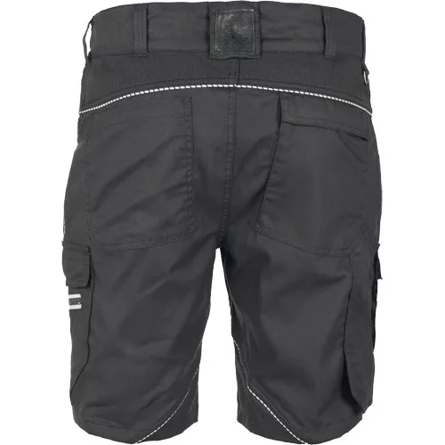 • modern szabású rövidnadrág formázott oldalvarrásokkal, rugalmas derékpánttal, rugalmas betétek hátul és az üleprészen, 2 D-gyűrű (nikkelmentes) a derékpánton, 2 belső zseb, 2 zsebfedős oldalzseb, bal oldalon extra cipzáras zseb, többfunkciós zsebek szerszámoknak, 2 farzseb, jobb oldalon zsebfedős, tépőzáras záródással, fényvisszavető részletek