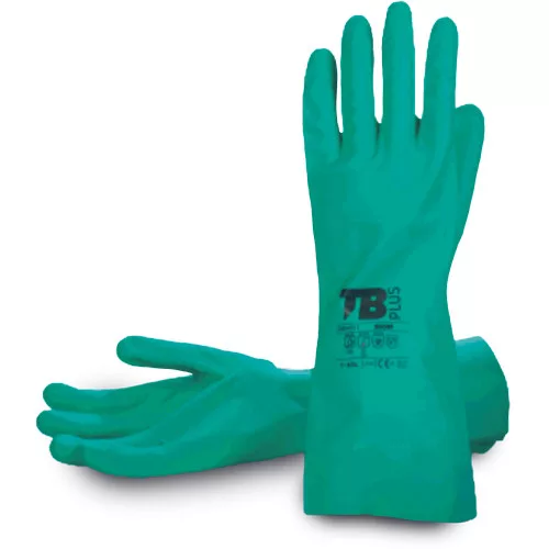 • zöld nitril kesztyű • bolyhos bélés • egyenes mandzsetta • vastagság: 0,38 mm • hossza: 33 cm • jó ellenálló képességgel rendelkezik olajokkal, kenőanyagokkal, olajos melléktermékekkel, vegyszerekkel, savakkal és nem ketonos oldószerekkel szemben • baktericid kezelés • III. kategória • EN 388:2016, EN ISO 374-1: 2016, EN ISO 374-5: 2016, EN 420: 2003+A1:2009