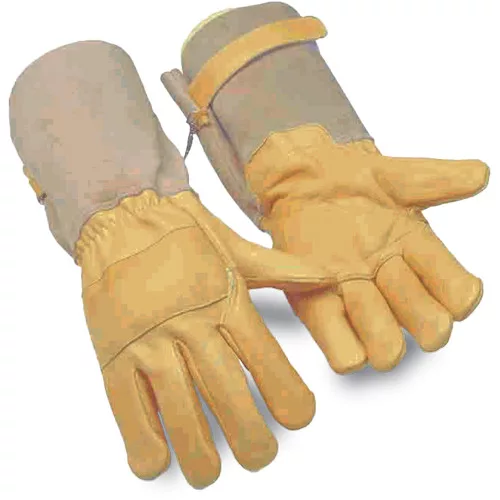 • ergonomikus védőkesztyű • a tenyér és a kézfej bőrből készült, vízlepergető és tűzálló kivitelben • megerősített ujjvégek vízlepergető színbőrből • 16 cm, hasított bőrből készült biztonsági mandzsetta vízlepergető kezeléssel • Kevlar® cérnával varrva • Kevlar® bélés a tenyérben • tépőzárral állítható, 15 cm-es Kevlar® mandzsetta