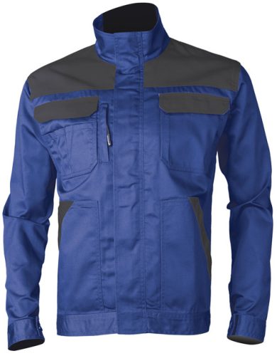 Twill (sávoly szövés): 35% pamut + 65% poliészter - 245 g/m2 vastag* Praktikus dzseki fazonú kabát* Álló gallér * Tépőzáras hajtókával fedett állig érő cipzár* Esztétikus, eltérőszínű zsebfedők, bőségráncok és betétek* Állítható derék és mandzsetta* Két oldal-, két, bőségráncos, rávarrt felső-, egy cipzáras telefon-, és három kiegészítő tartózseb* Műanyaggal bevont fém részek, szennyeződésektől védő, tépőzáras cipzárfedő* Végig erősített dupla, biztonsági varrás* Hosszított hátrész