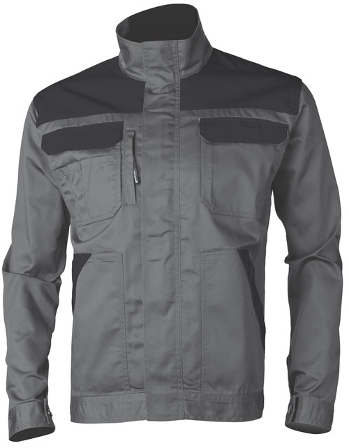 Twill (sávoly szövés): 35% pamut + 65% poliészter - 245 g/m2 vastag* Praktikus dzseki fazonú kabát* Álló gallér * Tépőzáras hajtókával fedett állig érő cipzár* Esztétikus, eltérőszínű zsebfedők, bőségráncok és betétek* Állítható derék és mandzsetta* Két oldal-, két, bőségráncos, rávarrt felső-, egy cipzáras telefon-, és három kiegészítő tartózseb* Műanyaggal bevont fém részek, szennyeződésektől védő, tépőzáras cipzárfedő* Végig erősített dupla, biztonsági varrás* Hosszított hátrész