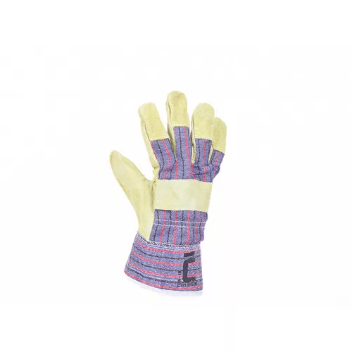 • kombinált védőkesztyű marha hasított bőrből • bélelt tenyér • pamut kézfej és mandzsetta