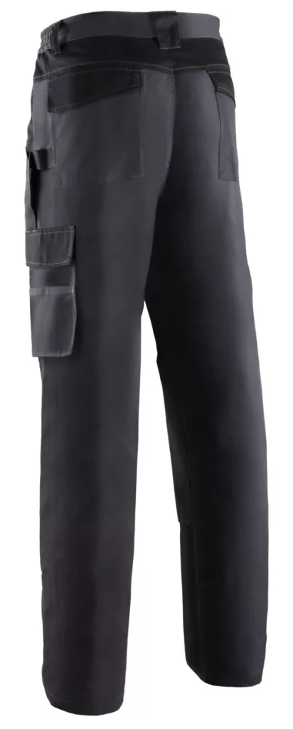 Twill (sávoly szövés): 60% pamut/40% PES - 270 g/m² + Oxford 600D - sötétszürke, Gumírozott derék, 6 zseb, 2 szerszámtartó hurok, Oxford térdvédő zsebek, Kontraszt színek, Regular fit,EN 14404: type 2