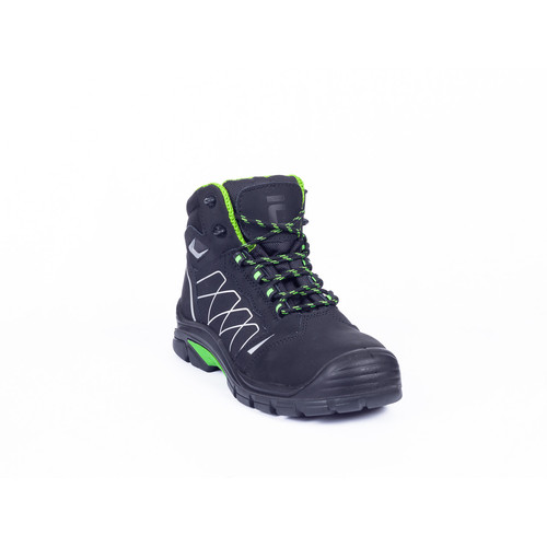 • biztonsági bakancs elősorban kültéri használatra • a fényvisszavető betétek a fokozott láthatóságért • antisztatikus PU/gumi járótalppal rendelkezik, amely kopásálló, üzemanyagálló • a felsőrész lélegző nubuk bőr vízlepergető impregnálással • a kényelmet a speciális belső talpbetétek fokozzák gélbetétekkel a sarok területén • fémmentes kivitel, kompozit lábujjvédővel és átszúrás ellen védő többrétegű textil köztalppal • második pár cipőfűző minden dobozban