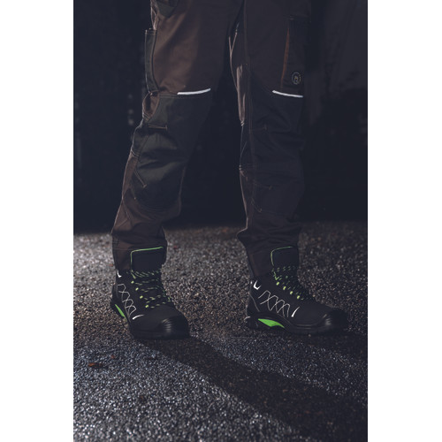 • biztonsági bakancs elősorban kültéri használatra • a fényvisszavető betétek a fokozott láthatóságért • antisztatikus PU/gumi járótalppal rendelkezik, amely kopásálló, üzemanyagálló • a felsőrész lélegző nubuk bőr vízlepergető impregnálással • a kényelmet a speciális belső talpbetétek fokozzák gélbetétekkel a sarok területén • fémmentes kivitel, kompozit lábujjvédővel és átszúrás ellen védő többrétegű textil köztalppal • második pár cipőfűző minden dobozban