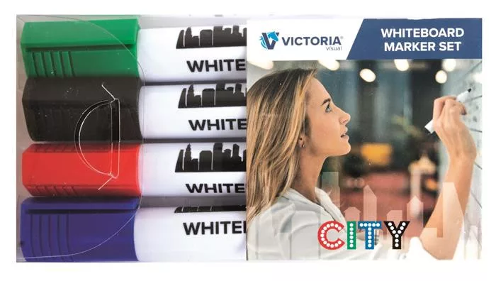 Táblamarker készlet, 1-3 mm, kúpos, VICTORIA VISUAL "City", 4 különböző szín