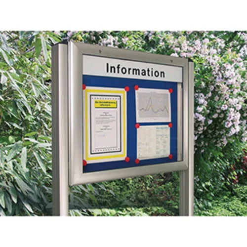 Tájékoztató tábla, széxméxma 540x80x800 mm, din a2 álló, alumínium profilok, edzett biztonsági üveg, antracit hátlap, 10 mágnessel + 1 zsebbel