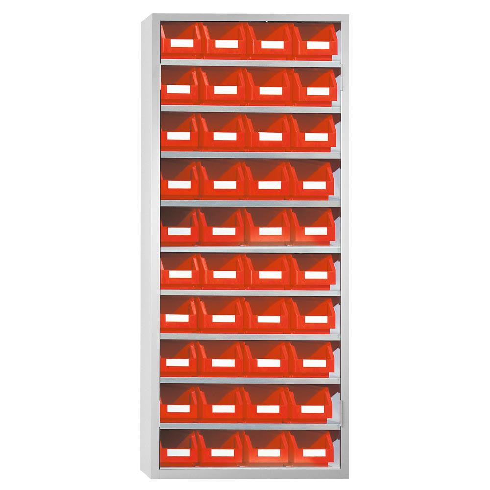Tárolószekrény, 9 polccal, 40xgr. dobozok. 4, szé x mé x ma 950x400x1950 mm, ral 7035 világosszürke