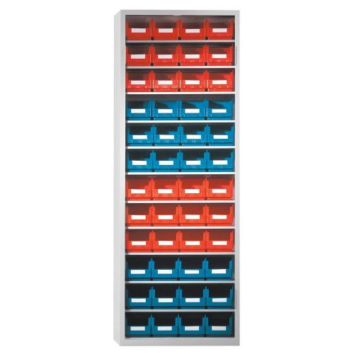 Tárolószekrény, ajtók nélkül, 11 polccal, 48xgr dobozokkal. 6, szé x mé x ma 690x285x1950 mm, ral 7035 világosszürke