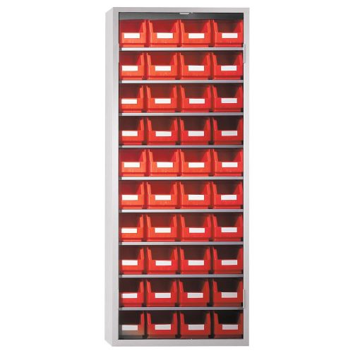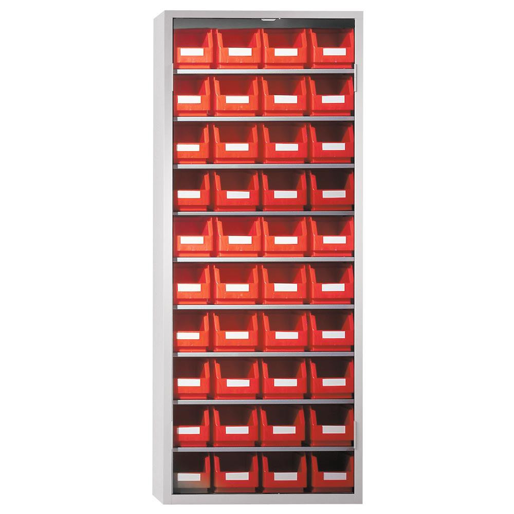 Tárolószekrény, ajtók nélkül, 9 polccal, 40xgr dobozokkal. 6, szé x mé x ma 690x285x1600 mm, ral 7035 világosszürke