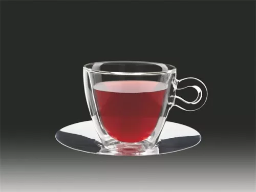 A csészék duplafalú boroszilikát üvegből készültek, ezzel egy hőszigetelő levegőréteget hozva létre.