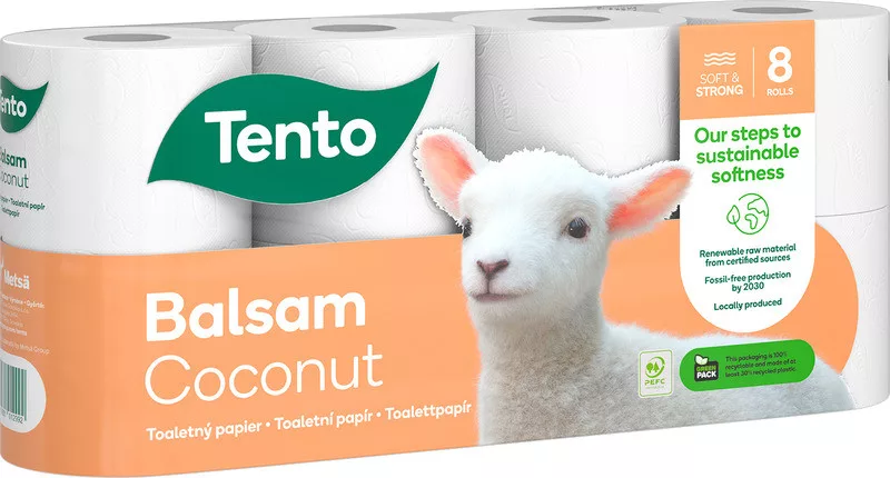 Tento Balsam Coconut toalettpapír (wc papír), 3 rétegű, 150 lapos, 8 tekercs/csomag