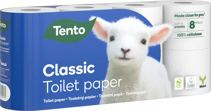A Tento Classic toalettpapír tökéletes választás, ha egy kis puhaságra vágyik színezékek és illatanyagok nélkül. Magas minőségű, strapabíró és puha toalettpapír a megbízható mindennapi használathoz. PEFC- és FSC-tanúsítvánnyal, valamint EU Ecolabel címkével rendelkezik.
