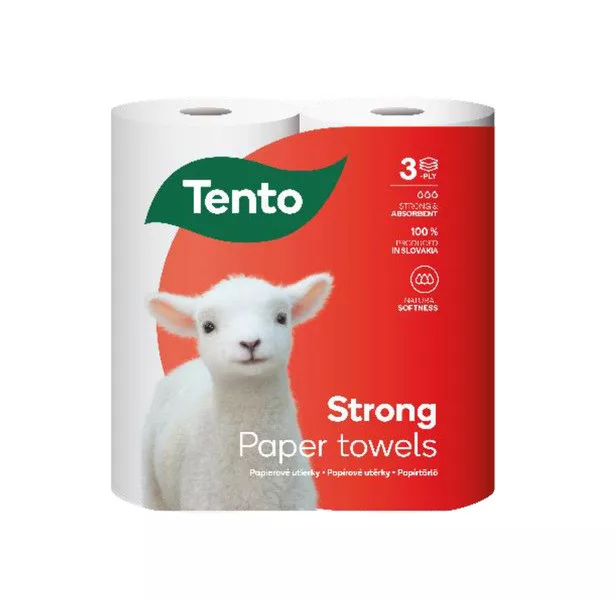 Tento Strong háztartási papírtörlő/kéztörlő, 3 rétegű, 72 lapos, 17 méter, 2 tekercs/csomag