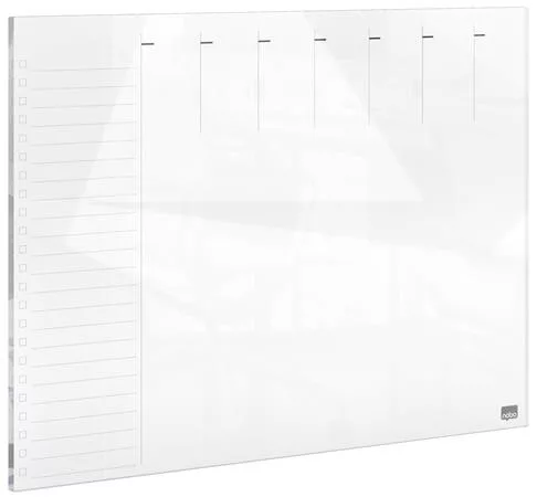 Tervezőtábla, üveg, mágneses felület, heti, 43x56 cm, NOBO "Home", fehér