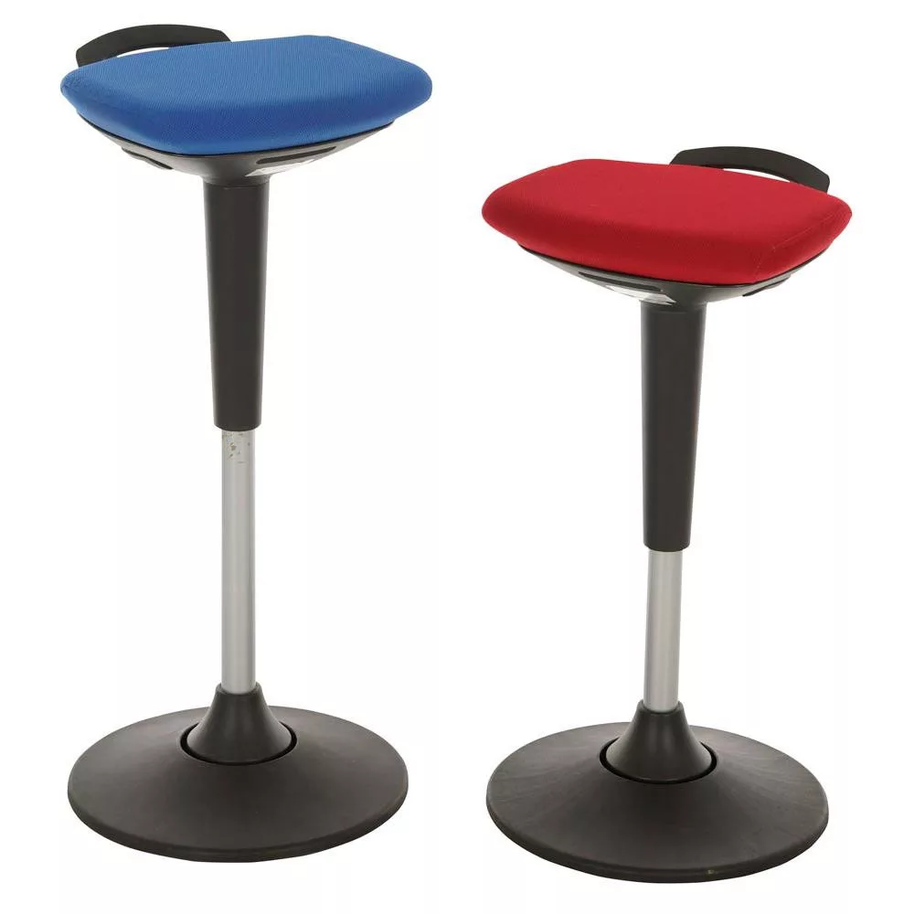 Több irányba mozgatható állótámasz, atollkék műbőr nyeregülés, mozgatható műanyag tárcsatalp, ülésmagasság: 510-700 mm