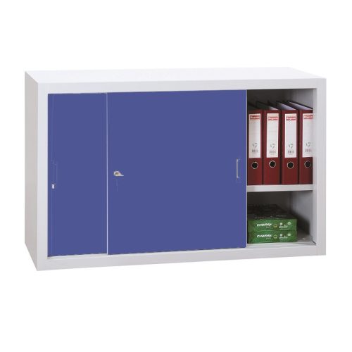 Tolóajtós fém irattároló szekrény 2 polccal, 1090mmx1200mmx450mm, Szürke/kék